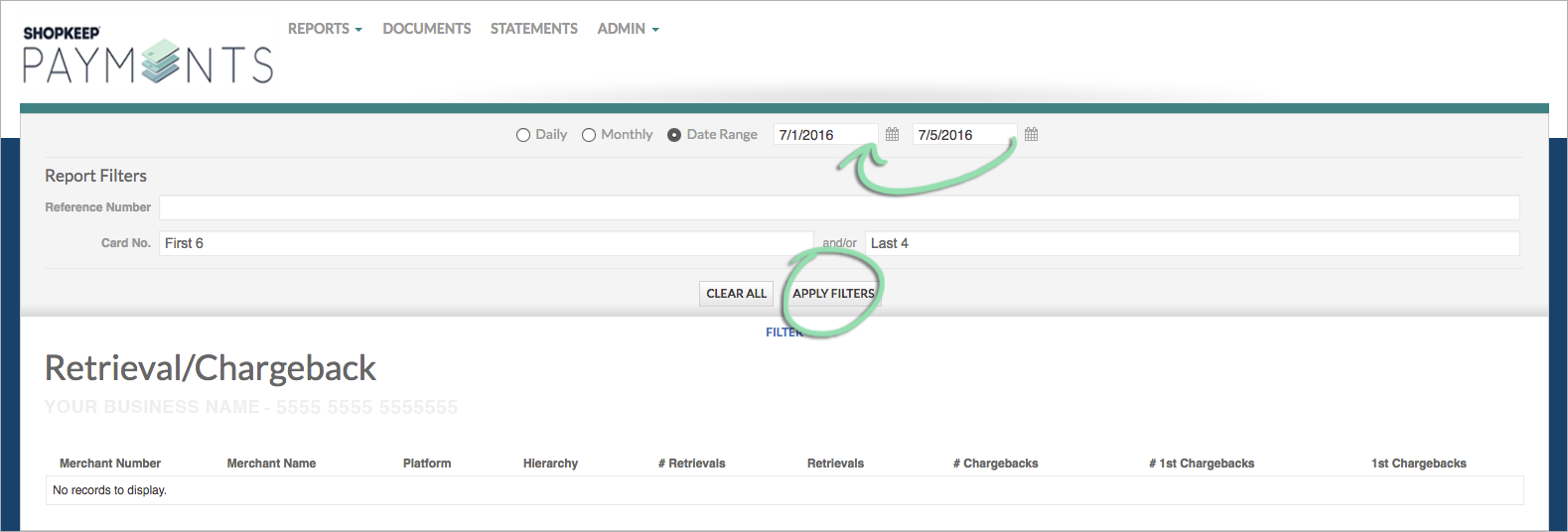 Payment History | View up to 18 months of deposit and debit information. Batch History | Keep track of your Batch Summaries, which include batch number, total sales, total returns, and net batch amount. Voids / Declines | This report shows you a detailed breakdown which includes transaction date, time and code, card type, card number, reason code, and transaction amount. Monetary Rejects | This chart lists rejected transactions, and information like the batch number, reason code, action, and transaction amount. Non-Qualifying Transactions | All non-qualifying transactions, their fee rate, the card number, authorization date, reason code, and transaction amount are listed on this chart. Authorization Log | This report reflects authorizations and transaction amounts. Returns | This is a list of return transactions with details about the transaction and card used. Transaction Search | Search for specific transactions by the authorization number, card number, or transaction amount. Retrievals / Chargebacks | These are the transactions that are disputed by a cardholder or card-issuing bank. The amounts reflect the amount disputed by the cardholder. Fixed Acquirer Network Fee Reports | These are fixed rates that credit card companies establish and charge for processing. Merchant Adjustment | Adjustments are the amounts credited to, or deducted from, your account to resolve processing and billing discrepancies. This report breaks down any adjustments you may have had during a period of time.